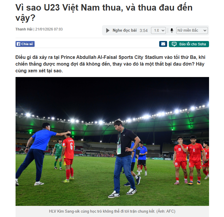 “正是因为过于自信,一旦比赛踢得不顺利,我们就会轻易崩溃。金相植表示,他和他的球员们本以为可以很快适应和应对一切,但事实并非如此,越南队无法在逆境中给出答案,而这本来是他们在东南亚运动会决赛做得非常出色的地方。”